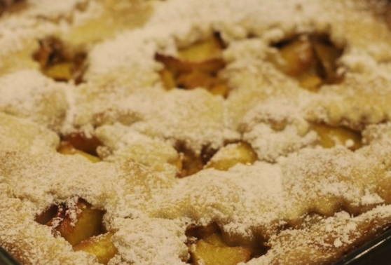 Шаг 11. Пирог с персиками и творогом готов. Можно пробовать!