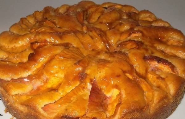 Шаг 7. Пирог с персиками на кефире в духовке готов. Подавайте угощение к столу!