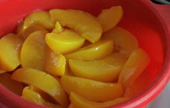 Шаг 5. Выкладываем в образовавшийся сироп дольки персиков.