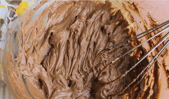 Шаг 4. Ореховую массу и столовую ложку какао добавляем в основной состав.