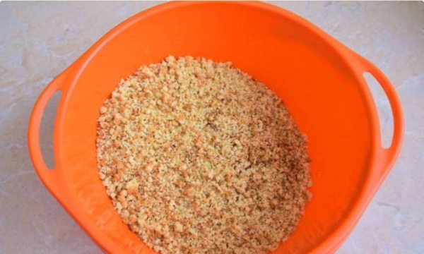 Шаг 1. Выбранную основу измельчаем в крошку при помощи мелкой решетки мясорубки либо острых ножей блендера.