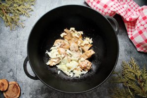 В казан налейте горячую воду на высоту 1/3 плова.