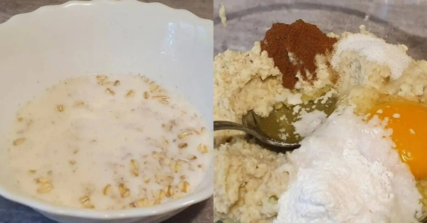 Овсяные хлопья1,5 стак. Творог200 г Йогурт2 ст. л. Молоко0,5 стак. Яблоко3 шт. Яйцо1 шт. Сахар1 ч. л. Разрыхлитель10 г Корица0,5 ч. л. Изюм50 г Грецкие орехи80 г