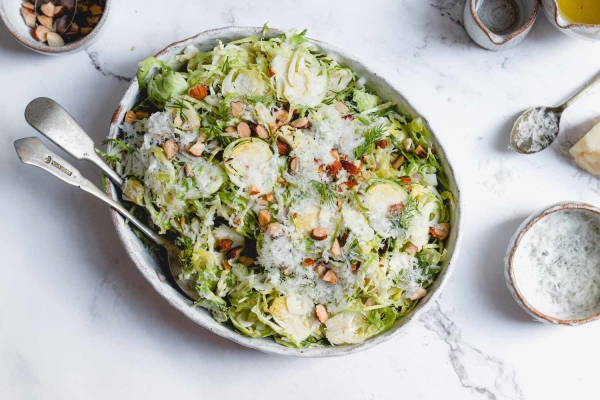 Для приготовления заправки смешайте сок лимона с растительным маслом, добавьте горчицу и сухой базилик. Перемешайте все и полейте салат.