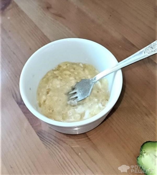 Раздавливаем и разминаем спелый банан вилкой, насколько получится. Совсем до каши не надо — вкрапления банана в десерте придают особый смак.