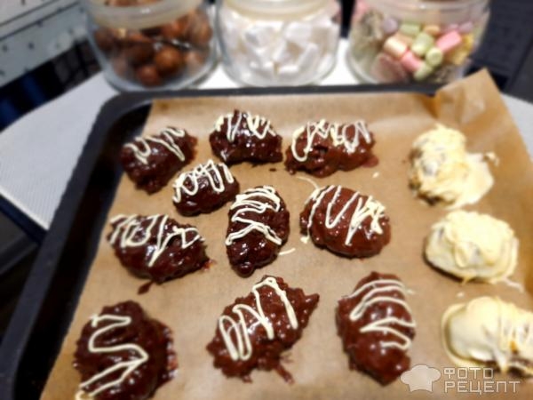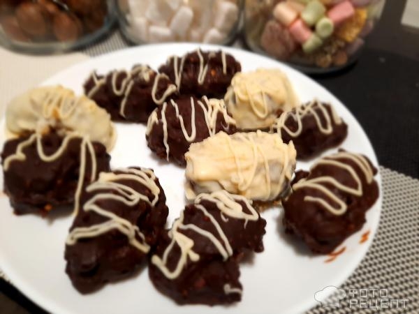 можно их обвалять в какао порошке, кунжуте, шоколаде или же в кокосовой стружке, но я обваляю их в растопленном шоколаде!