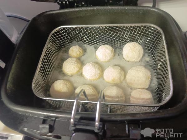Готовятся шарики всего несколько минут. Готовим до появления золотистой корочки и когда они всплывут достаём.