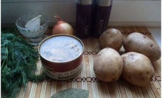 Шаг 1. Вскройте рыбные консервы. Подготовьте овощи, помойте их и очистите. Зелень для супа можно взять любую по вашему вкусу.