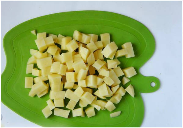 Шаг 2. Картошку нарежьте небольшими кубиками.