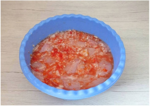 Шаг 5. Состав перемешиваем и закрываем крышкой либо затягиваем пленкой, маринуем при комнатной температуре около 3 часов.