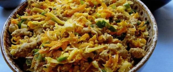 Шаг 1. Мяса в начинке должно быть гораздо больше, чем других ингредиентов, поэтому лук и морковку берите небольшого размера. Куриные яйца заранее отварите вкрутую.