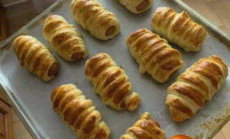 Шаг 9. Запекайте сосиски в тесте при 200 градусах в течение 20 минут.
