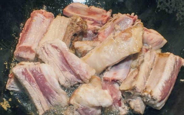 Тушеные свиные ребрышки на сковороде
