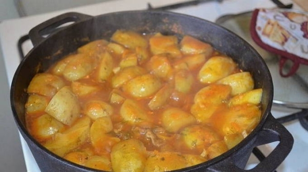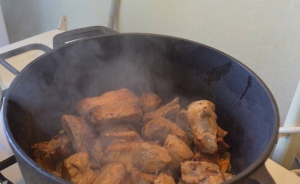 Шаг 7. Укройте казан крышкой и тушите блюдо до готовности в течение 40 минут.