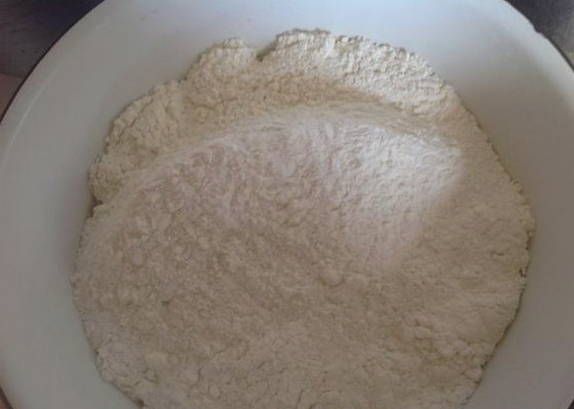 Шаг 1. Подготовим основные продукты. Муку просеиваем через мелкое сито вместе с солью на рабочую поверхность.