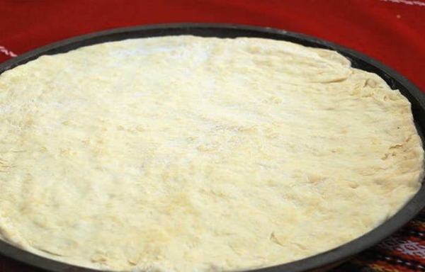 Шаг 7. Тесто на кефире для пиццы готово! Выкладывайте начинку.