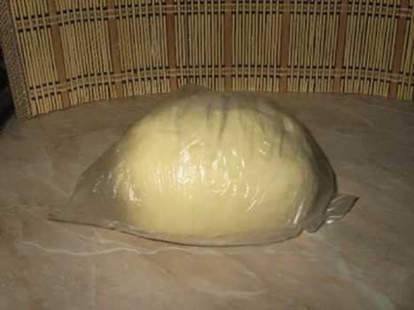 4. Хорошо вымешанное тесто поместите в целлофановый пакет или оберните в пищевую пленку, положите тесто в холодильник на 30 минут. После этого тесто станет эластичным и податливым, можно раскатывать его и лепить вареники.