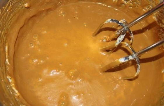 5. Добавить к сливочному маслу вареную сгущенку и взбить миксером или блендером до гладкой однородной эмульсии.