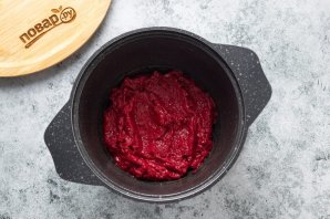Слегка остудите ягоды в кастрюле под закрытой крышкой. А затем проторите их через сито, чтобы удалить шкурки и косточки.