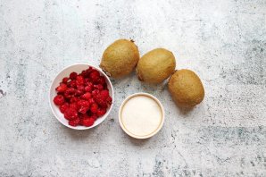 Подготовьте все необходимые ингредиенты для приготовления варенья из малины и киви. Киви тщательно вымойте и обсушите, малину переберите, при необходимости сполосните и дайте воде полностью стечь.