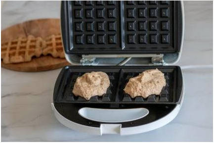 Шаг 10. По прошествии этого времени включить мультипекарь и установить решетки для вафель. Смазывать маслом не надо. По 2 ст. ложки выкладывать тесто на каждую решетку. Закрыть крышку и выпекать вафли в продолжение 3 минут.