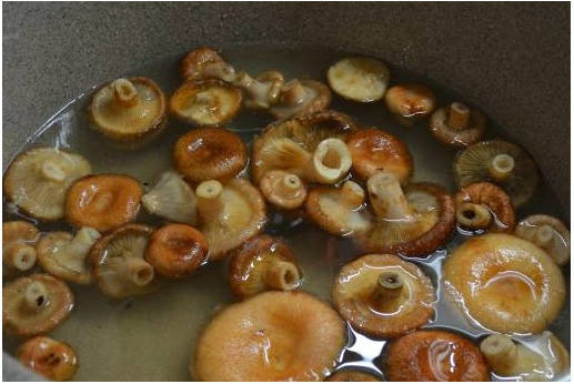 Шаг 5. Волнушки опускаем в горячий маринад и варим около 10-15 минут после закипания.