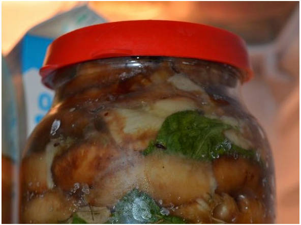 Шаг 6. Погружаем грибы в маринад, повторно доводим до кипения и разливаем по стерилизованным банкам. Ставим банки в кастрюлю с кипящей водой, дно которой устилаем полотенцем и стерилизуем заготовки 30 минут. После закатываем и даем остыть, укутав в одеяло.