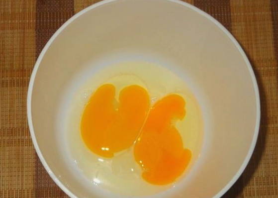 Шаг 1. В глубокую миску разбиваем два куриных яйца.