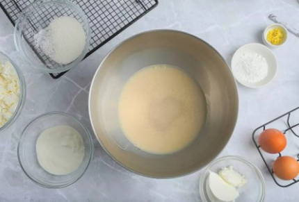 Шаг 3. В чаше блендера перемалываем творог с яичными белками и оставшимся сахаром.