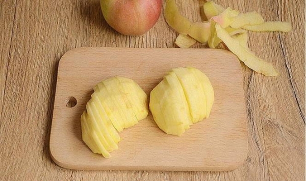 Яблочную мякоть нарезаем небольшими ломтиками.