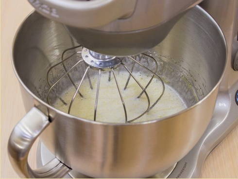 Шаг 2. Включаем миксер и взбиваем компоненты добела и полного растворения сахара (не менее пяти минут).