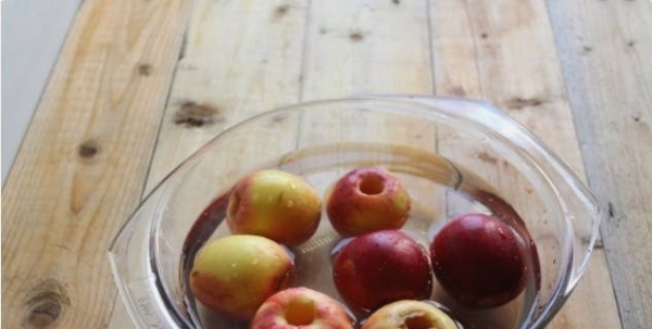 Шаг 2. Окунаем яблоки в воду, смешанную с лимонным соком.