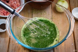 В просторную миску перелейте содержимое чаши блендера, вбейте яйцо, добавьте соль.